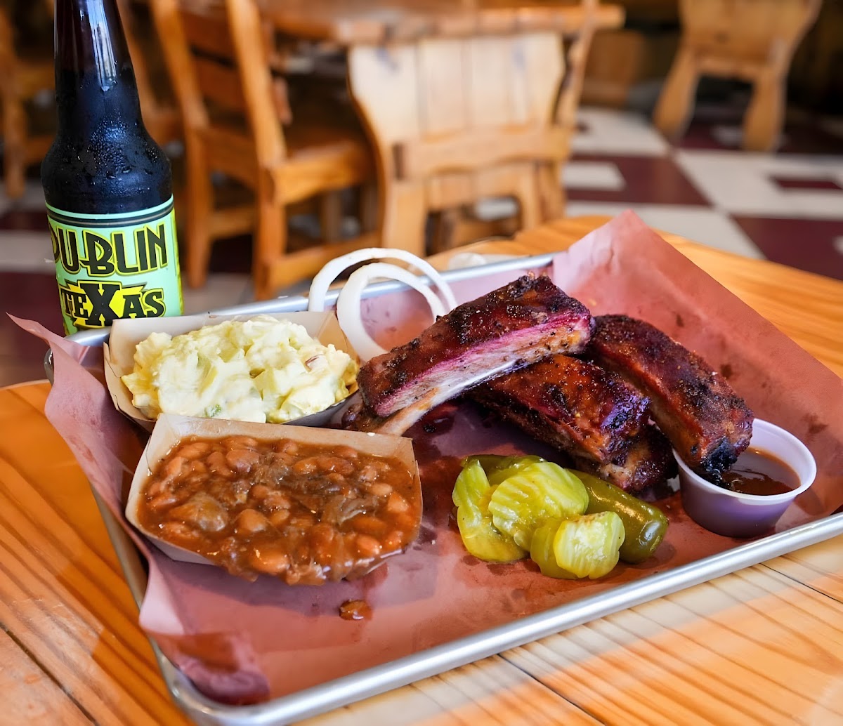 unexpectedly delicious. For a place that shares a location with a gas station. It really stands out. Fantastic brisket and fantastic ribs. Didn't even need a sauce. the interior is unique. and certainly worth a visit. I wouldn't be surprised if it makes the next top 50 in Texas monthly.